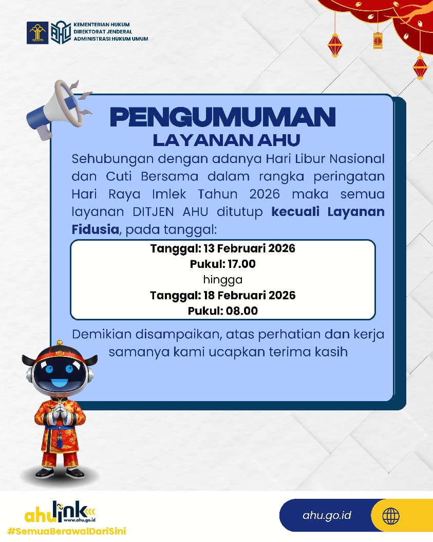 Ditjen AHU memberikan pelayanan - pelayanan terkait dengan Badan Hukum seperti :