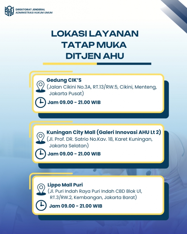 LOKASI LAYANAN TATAP MUKA DITJEN AHU