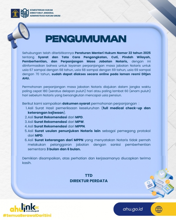 PENGUMUMAN PERPANJANGAN MASA JABATAN NOTARIS