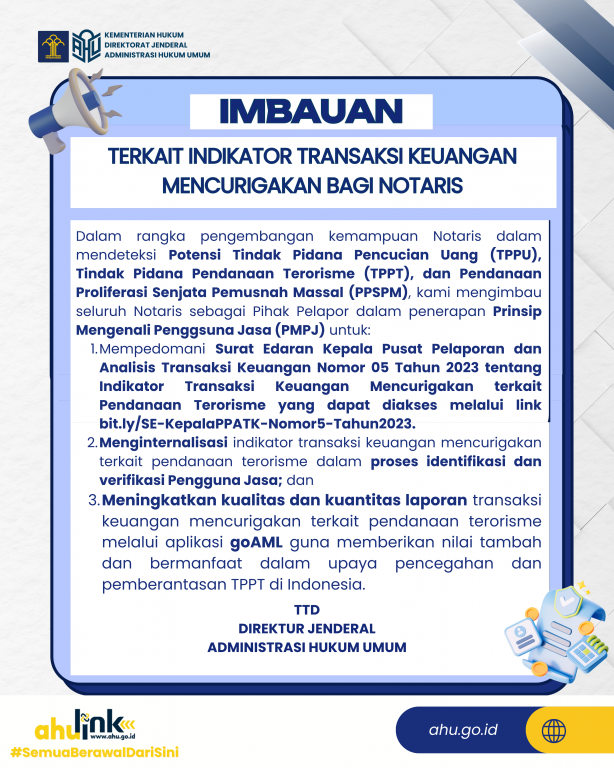 IMBAUAN TERKAIT INDIKATOR TRANSAKSI KEUANGAN MENCURIGAKAN BAGI NOTARIS