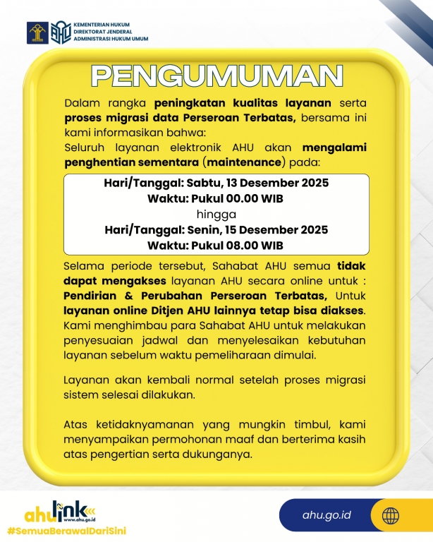 Pengumuman Maintenance Migrasi Data Perseroan Terbatas