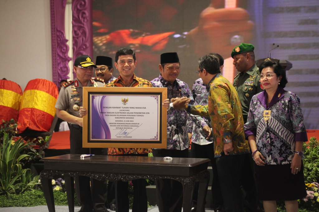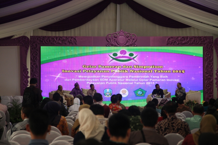 Sidoarjo, 14 -16 Juni 2015 - Gelar Pameran dan Simposium Inovasi Pelayanan Publik Nasional 2015 dibuka secara resmi oleh MenPANRB Yuddy Chrisnandi yang diawali dengan laporan panitia oleh Deputi Bidang Pelayanan Publik KemenPANRB Mirawati Sudjono, menyampaikan bahwa instansi pemerintah dituntut untuk berinovasi dalam memberikan pelaynan kepada masyarakat. Pemerintah daerah tidak harus meniru pelayanan publik yang dilakukan oleh pemerintah pusat. Pemerintah Provinsi, Kanupaten maupun Kota dapat melakukan pengembangan pelayanan publik demi makna dari reformasi birokrasi itu sendiri, dengan program One Agency One Innovation yaitu satu instansi satu inovasi oleh setiap Kementerian, Lembaga maupun Pemerintah Daerah wajib membuat inovasi setiap tahunnya.