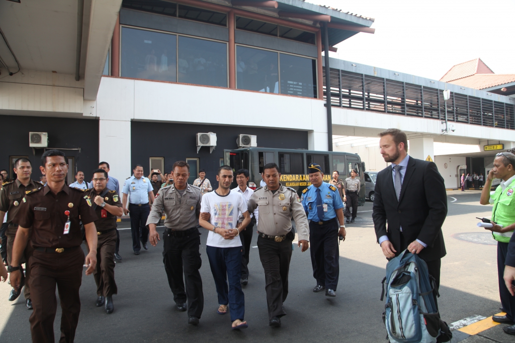 Penyerahan ekstradisi tersebut telah dilaksanakan pada tanggal 13 Agustus 2015, pukul 08:30 WIB, bertempat di Kantor Imigrasi Klas I Khusus Soekarno-Hatta - Jakarta, Indonesia. Yang diserahkan oleh Perwakilan Pemerintah RI yaitu Direktur Hukum Internasional dan Otoritas Pusat kepada yang menerima yaitu Perwakilan Pemerintah Australia Julia Thwaite dengan disaksikan oleh Saksi dari Pemerintah RI yang terdiri dari Kejaksaan Agung RI, Divisi Hubungan Internasional, Kepolisian Negara RI, Satuan Tugas Khusus Anti Penyelundupan Manusia, Kepolisian Negara RI, Kemnetrian Luar Negeri, serta Direktorat Jenderal Imigrasi Kementerian Hukum dan Hak Asasi Manusia RI dan Saksi dari Pemerintah Australia yaitu Andrew Perkins Australian Federal Police. (noe)