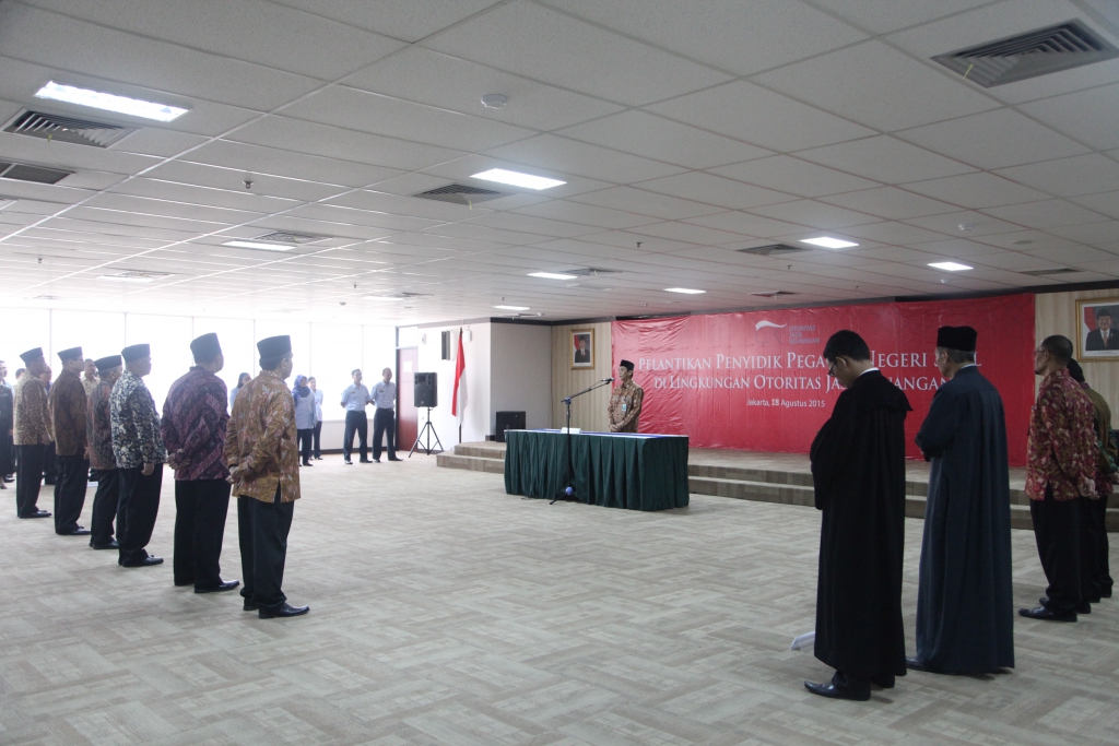 Sesuai Persyaratan Pasal 3A ayat (1) Peraturan Pemerintah No. 58 Tahun 2010 dan telah dilantik serta diambil sumpahnya adalah sebagai berikut: Firman Gerry R. Butarbutar, SE; Jus Marfinnor, AK., M.Ak., SH; Anhar Darwis, SE., Ak., SH; Wisnu Indrawan, AK; Teguh Bambang Rustanto, SE., SH., MH; dan Miftah Muttaqin, AK., M.For Accy, dengan ini mempunyai kewenangan untuk melakukan penyidikan tindak pidana dalam lingkup undang-undang yang menjadi dasar hukum di lingkungan Otoritas Jasa Keuangan dengan wilayah kerja seluruh Indonesia.