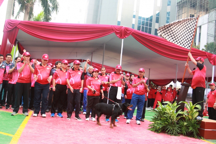 Jakarta, 24 Oktober 2015 - Masih rangkaian kegiatan dalam rangka memeriahkan hari jadi Kementerian Hukum dan HAM yang ke-70 seluruh keluarga besar Kementerian Hukum dan HAM RI beramai-ramai berkumpul dihalaman Kementerian Hukum dan HAM bukan untuk berkerja seperti yang dilakukan setiap harinya melainkan untuk berpartisipasi dalam mengikuti kegiatan Gerak Jalan Sehat Keluarga Besar Kementerian Hukum dan HAM RI.