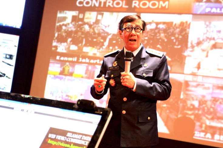 Dalam kesempatan kali ini Menkum HAM juga meresmikan “Control Room” berlokasi di ex Gedung Sentra Mulia Lt. 19, dengan adanya Control Room Menkum HAM dapat dengan mudah berkomunikasi dengan jajaran baik terkait kinerja dan anggaran pada setiap UPT apakah telah berjalan baik atau tidak.