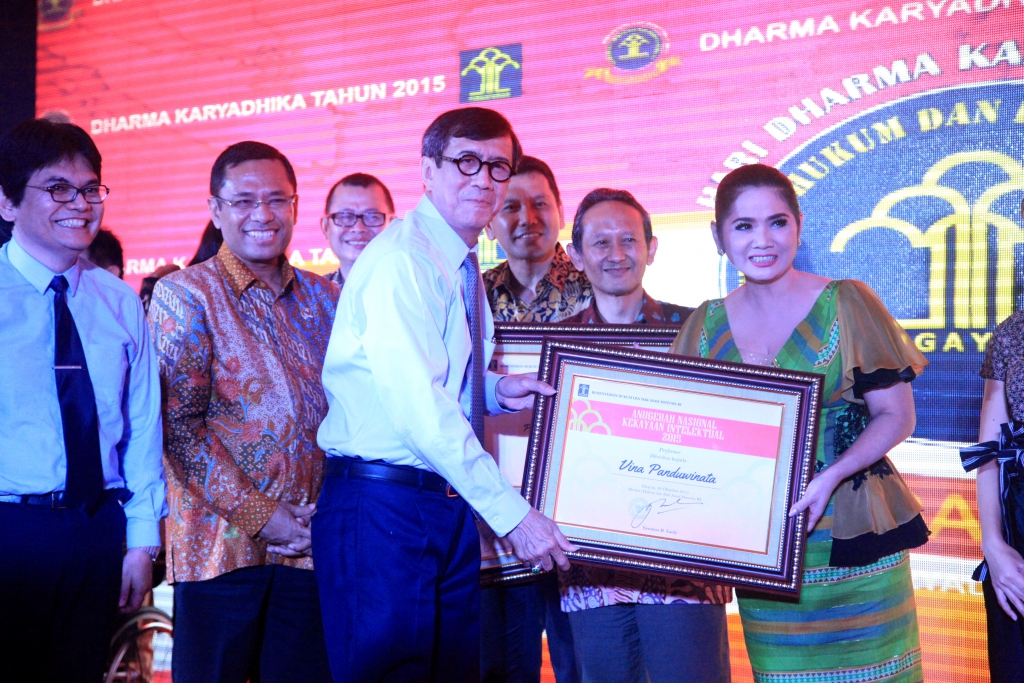 Jakarta, 30 Oktober 2015 - Kementerian Hukum dan Hak Asasi Manusia, menggelar perayaan Hari Kekayaan Intelektual Tahun 2015 dengan tema “Saatnya Tidak Membeli Barang Palsu dan Bajakan”. Bertempat di Gedung ex Sentra Mulia Lt. 19 Kementerian Hukum dan Hak Asasi Manusia memberikan penghargaan KI kepada insan kreatif Indonesia, penghargaan tersebut diberikan untuk meningkatkan produktifitas karya-karya intelektual, dengan tidak membeli barang barang palsu ataupun bajakan.