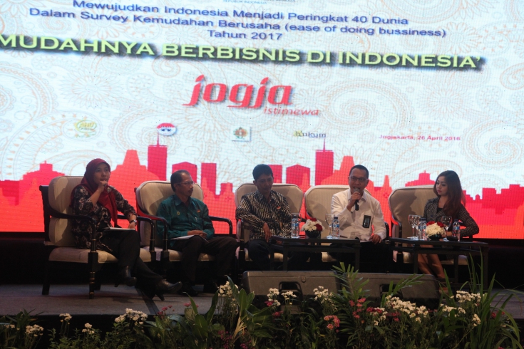 Yogyakarta - Pengenalan pelayanan hukum di AHU dipaparkan oleh Daulat Pandopatan Silitonga, SH., M.Hum selaku Direktur Perdata dalam talkshow “Mudahnya Berbisnis di Indonesia”. Dalam paparannya, Daulat mengatakan, pendaftaran pendirian PT hingga pengangkatan dan pemberhentian notaris segala informasi bisa didapatkan melalui online. Ditjen AHU pun terus meningkatkan kualitas IT. Sementara itu, Dodit Sugeng Murdowo mengatakan, dinas perijinan dibentuk karena terdapat kepastian pembayaran dan proses, dan semua perijinan diproses secara online untuk mempermudah dan mempercepat waktu serta memudahkan pemohon dan target 2017 proses perijinan hanya memakan waktu 3 jam. Hal senada juga diungkap oleh Darsono, SH. Untuk melakukan investasi, pemerintah kota berusaha mempermudah proses perizinan. “Dalam mendukung MEA, pemkot mengeluarkan regulasi dengan berupaya untuk melakukan percepatan pelayanan baik secara parallel maupun secara online,” ungkapnya.
