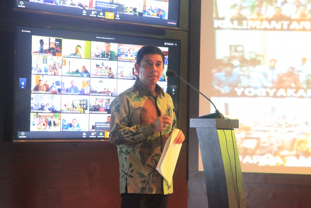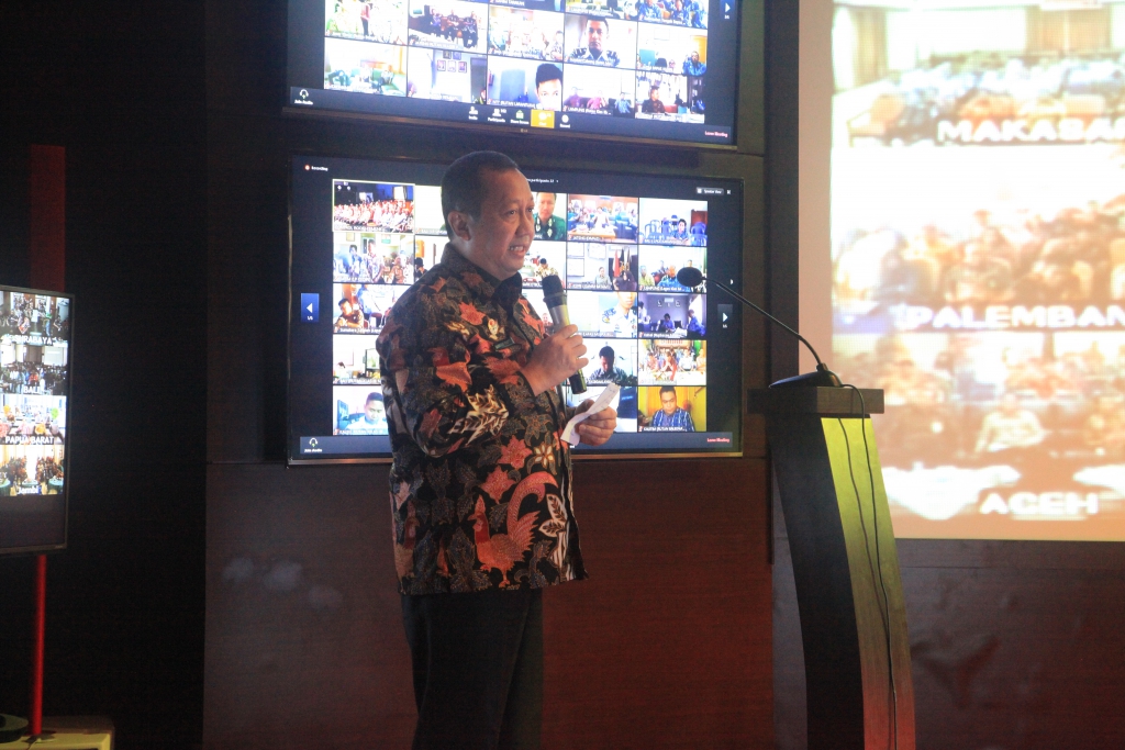 JAKARTA- Sekretaris Jenderal Kementerian Hukum dan HAM RI bersama Menteri Pendayagunaan Aparatur Negara dan Reformasi Birokrasi (PAN-RB) Yuddy Chrisnandi Mengadakan Teleconferece dengan 33 Kantor Wilayah Kementerian Hukum dan HAM di Gedung Sentra Mulia lantai 19(17/5).