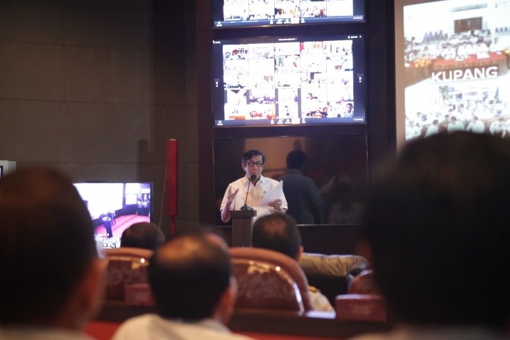 "Kita berkumpul disini sebagai salah satu cara mempererat tali silaturahmi dan sebagai sarana berkoordinasi bersama, meskipun melalui teleconference. Ini semua menandakan bahwa Menteri Hukum dan HAM, senantiasa ingin bertukar informasi kekurangan satu sama lain terhadap persoalan yang muncul diberbagai daerah," kata Bambang Rantam Sariwanto