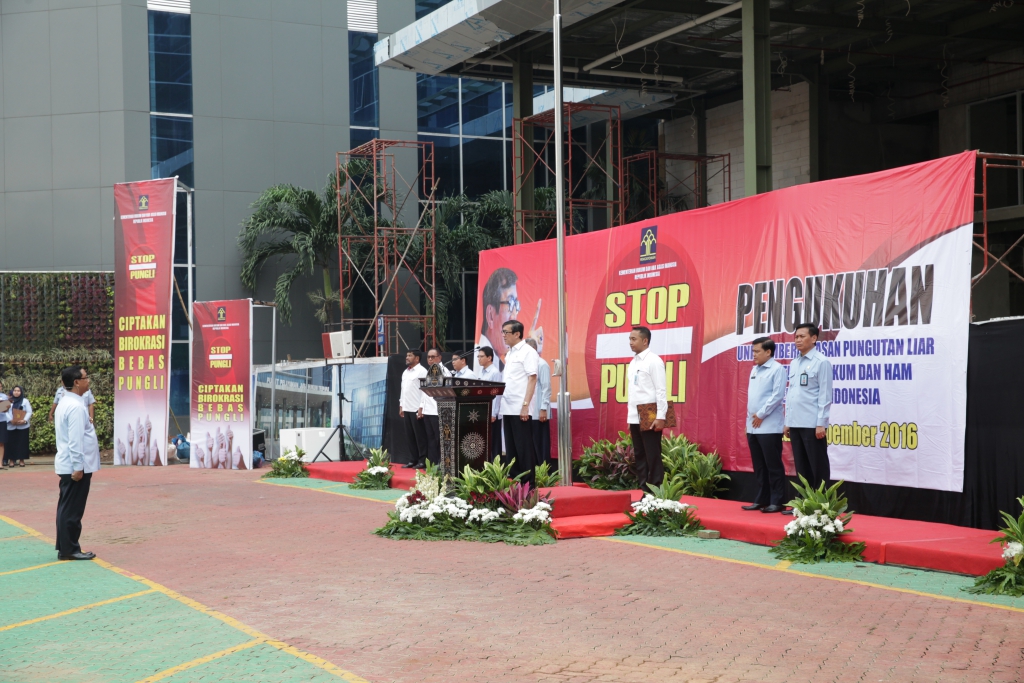 Menkumham RI, Yasonna H. Laoly dalam sambutannya menyampaikan bahwa percepatan pembangunan tidak akan berhasil tanpa ditopang oleh stabilitas politik, keamanan, dan kepastian hukum. Oleh karenanya, program reformasi hukum menjadi agenda strategis pemerintah saat ini, untuk memulihkan kepercayaan publik, serta menciptakan keadilan dan kepastian hukum, guna mengefektifitas pemberantasan Pungli, oleh karena itu Presiden RI Joko Widodo telah mengeluarkan PERPRES Nomor 87 Tahun 2016 tanggal 20 Oktober 2016 tentang Satuan Tugas Sapu Bersih Pungutan Liar (SABER PUNGLI) yang juga menjadi payung hukum pembentukan Unit Pemberantasan Pungutan Liar (UPP) di Kementerian/Lembaga dan Pemerintah Daerah.