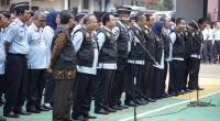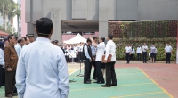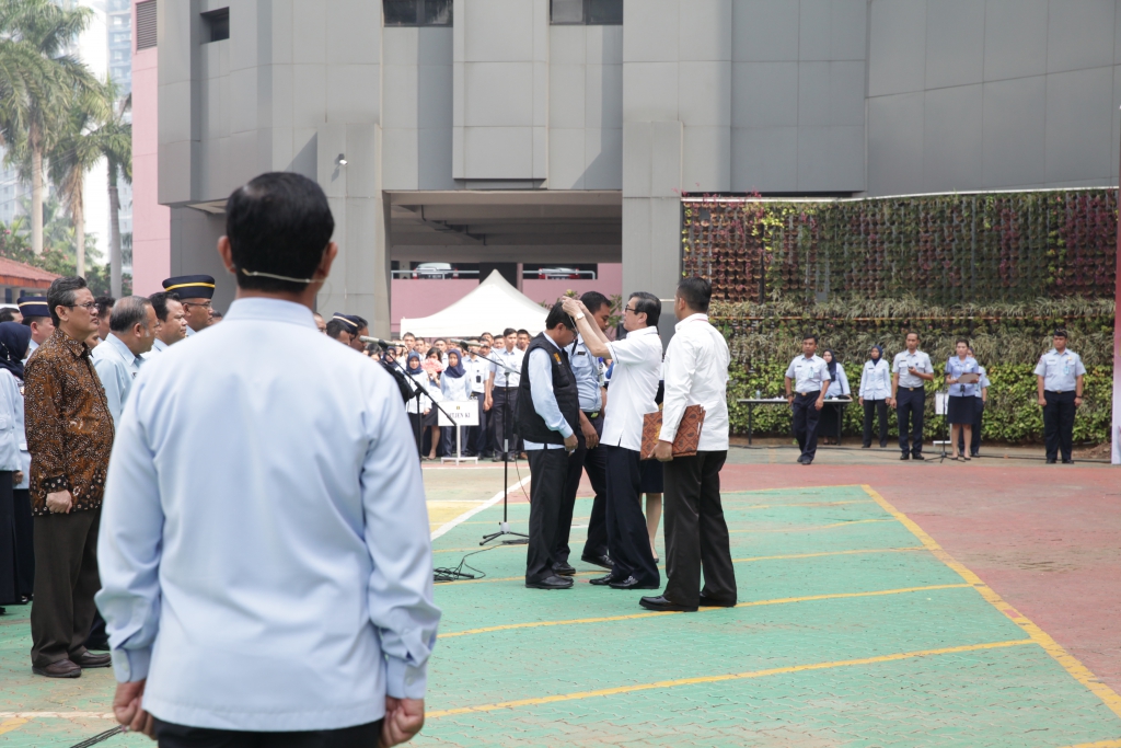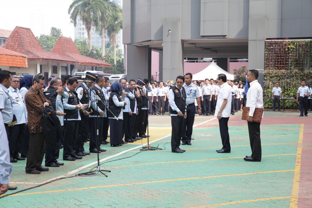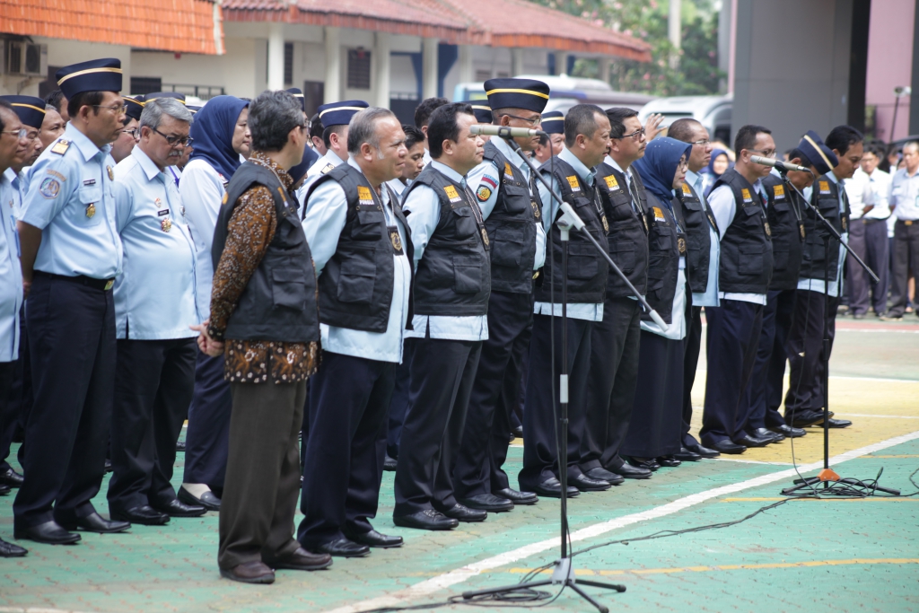 Jakarta – Apel pagi di lingkungan Kementerian Hukum dan HAM senin (07/11) terasa special, Menteri Hukum dan Hak Asasi Manusia (Menkumham) Yasonna H Laoly mengukuhkan langsung Unit Satuan Tugas Sapu Bersih Pungutan Liar (SABER PUNGLI). Pengukuhan yang ditandai dengan penyematan rompi hitam ini diikuti dan disaksikan oleh seluruh pegawai dilingkungan Kementerian Hukum dan Hak Asasi Manusia (Kemenkumham) pada apel pagi dilapangan upacara Kemenkumham Jl. HR. Rasuna Said Kuningan -Jakarta selatan.