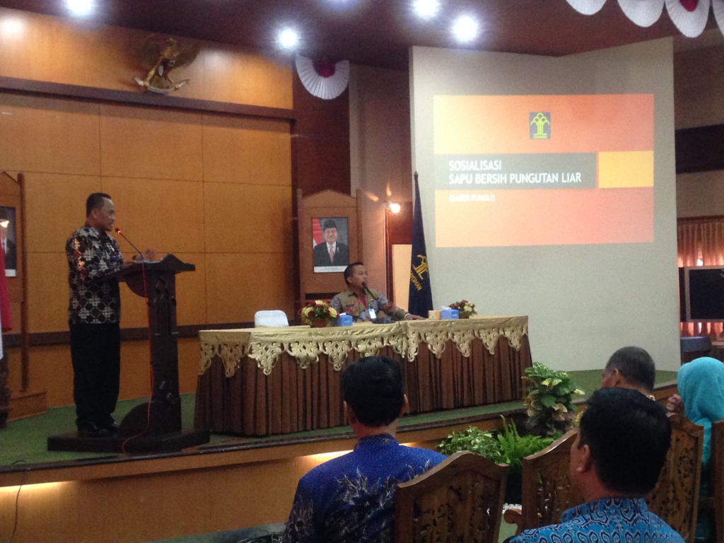 Yogjakarta – Bertempat di Ruang Rapat Kantor Wilayah Kementerian Hukum dan HAM Propinsi DI Yogjakarta, tim dari Bagian Keuangan Direktorat Jederal Administrasi Hukum Umum melaksanakan Kegiatan Koordinasi Terkait Dengan Pembinaan Pengelolaan Pendapatan Negara Bukan Pajak (PNBP) Serta Permasalahan-permasalahan PNBP Yang Dihadapi dan Monitoring Pelaksanaan Pembayaran Pendapatan Negara Bukan Pajak (PNBP) di Kantor Wilayah Kementerian Hukum dan HAM Propinsi Di Yogyakarta (3/11). Kegiatan ini diawali dengan Sosialisasi dari Kantor Wilayah terkait dengan Sapu Bersi Pungutan Liar.