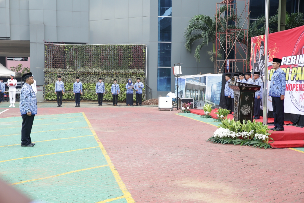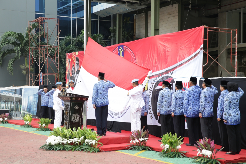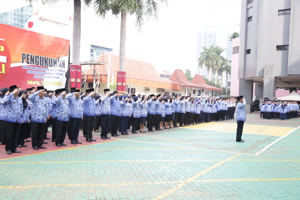 Dalam rangka memperingati Hari Pahlawan tanggal 10 November, Kementerian Hukum dan Hak Asasi Manusia (Kemenkumham) menyelenggarakan Upacara Bendera dengan tema “Satukan Langkah Untuk Negeri”, upacara yang diikuti oleh seluruh pegawai dilingkungan Kemenkumham ini dilaksanakan dihalaman kantor Kemenkumham Jl.HR.Rasuna Said – Kuningan – Jakarta Selatan. (10/11)