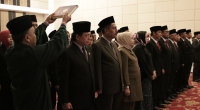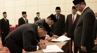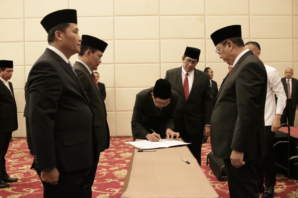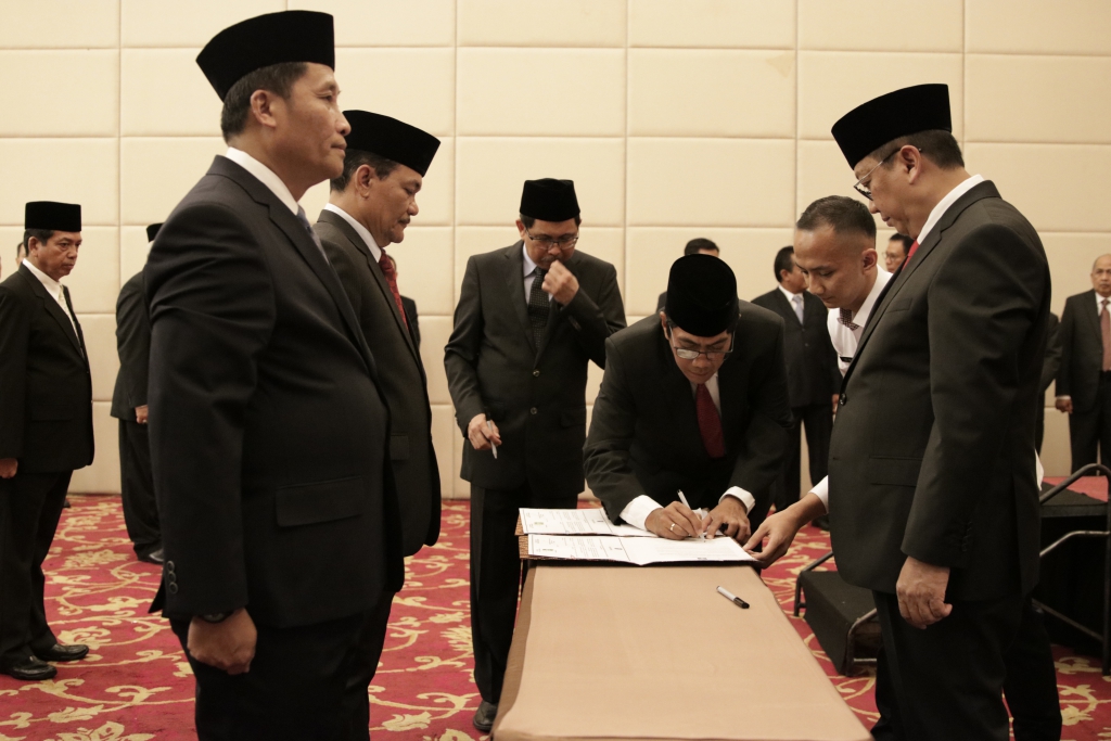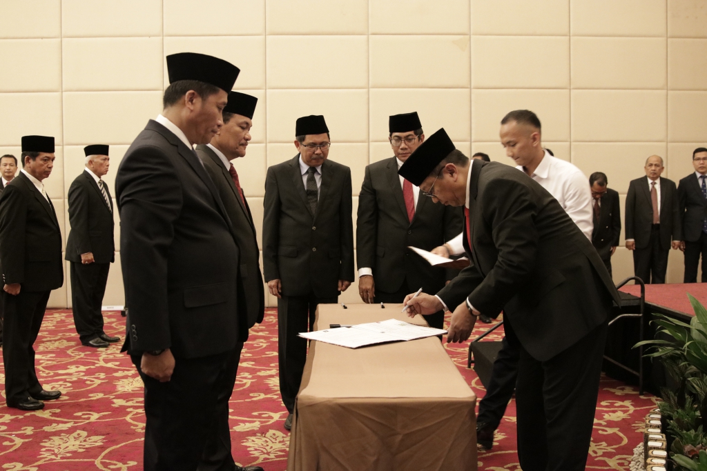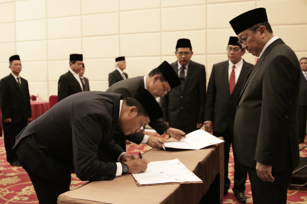 Bogor – Sekretaris Jenderal Kementerian Hukum dan Hak Asasi Manusia Bambang Rantam Sariwanto melantik dan mengambil sumpah pergantian antar waktu Anggota Majelis Pengawasan Wilayah Notaris dan Majelis Kehormatan Notaris Wilayah. Pelantikan diadakan di Grand Savero Hotel Bogor ini di hadiri oleh Anggota Majelis Pengawas Pusat, Kepala Kantor Wilayah, Kepala Divisi Pelayanan Hukum dan HAM, Anggota Majelis Pengawas Wilayah Notaris, Anggota Majelis Kehormatan Notaris Wilayah dan disaksikan oleh Direktur Jenderal Administrasi Hukum Umum Freddy Harris dan Inspektur Jenderal Aidir Amin Daud. (20/04)