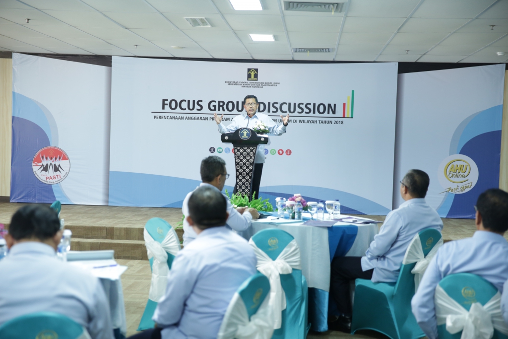 “ Program Ditjen AHU selalu bersinergi dengan program Nawa cita presiden maka dengan adanya kegiatan Focus Group Discussion Perencanaan Anggaran Program Administrasi Hukum Umum di Wilayah Tahun 2018 diharapkan agar semua program yang laksanakan dari anggaran PNBP Ditjen AHU dapat berjalan sesuai dengan sasaran sinergis”, Tambah Agus.
