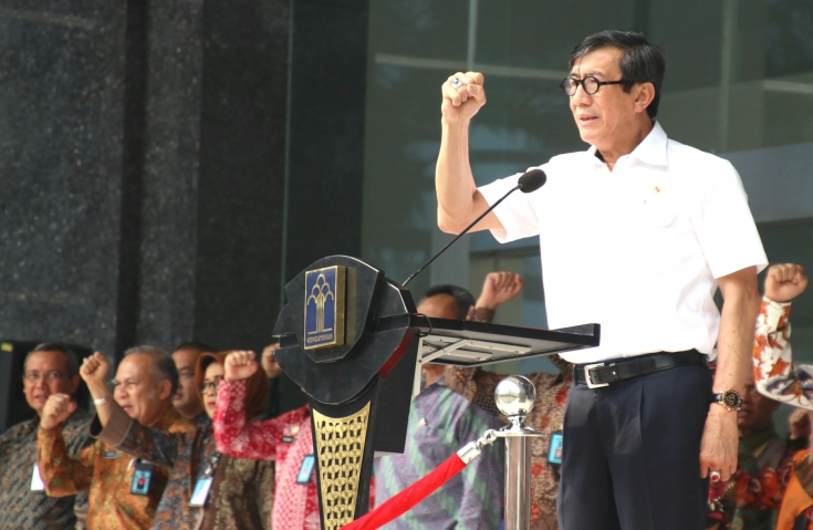 Dalam sambutannya, Yasonna menyampaikan menjadi suatu kebahagian dapat melepas dan memberangkatkan mudik bareng keluarga besar Kemenkumham. Mudik sendiri, kata dia, sudah menjadi suatu tradisi yang ditunggu-tunggu masyarakat Indonesia pada saat lebaran.