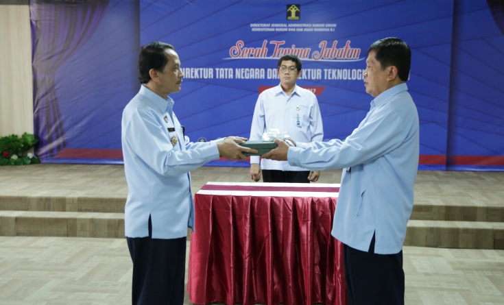 Pada upacara sertijab yang dipimpin langsung oleh Direktur Jenderal (Dirjen) AHU, Freddy Harris, dua pejabat eselon dua yang melakukan sertijab yakni, Direktur Tata Negara yang sebelumnya dijabat oleh pelaksana tugas (plt) Agus Nugroho Yusuf diserah terimakan ke Kartiko Nurintias. Kemudian Direktur Teknologi Informasi dari Agusta Konsti Embly diserah terimakan ke Sarno Wijaya.