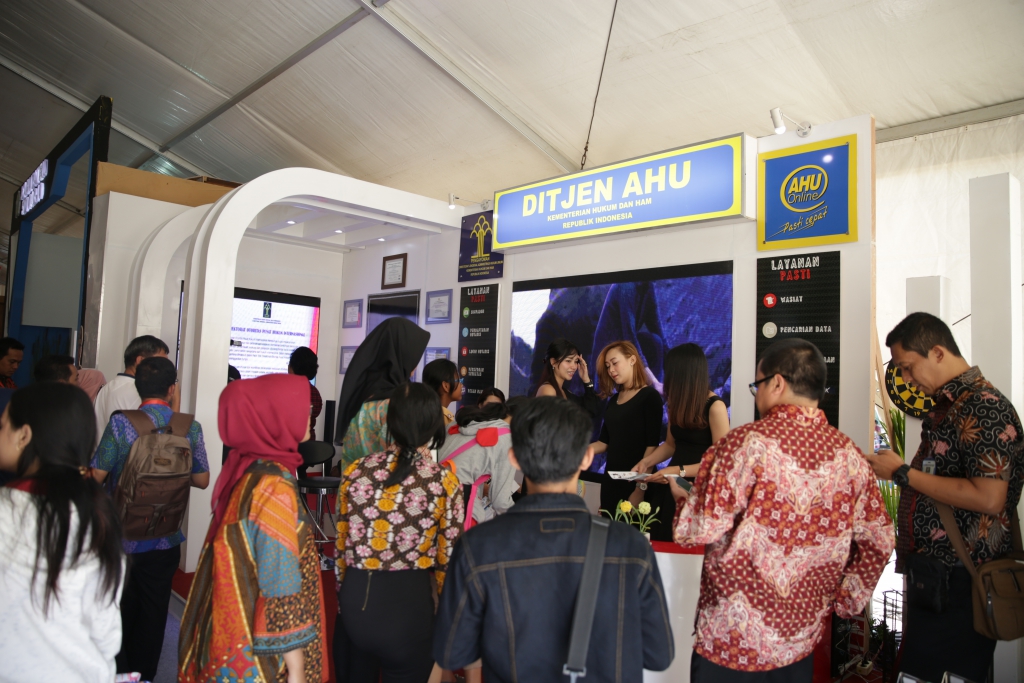 Menampilkan pelayanan hukum umum berbasis online dengan jargon Pasti Cepat, stand Ditjen AHU dipadati para pengunjung untuk melihat secara langsung bagaimana cara menggunakan berbagai aplikasi yang ada di AHU Online. Masyarakat yang datang ke stand tersebut ingin mengetahui pelayanan yang diberikan oleh Ditjen AHU sudah semakin cepat dengan adanya AHU Online.