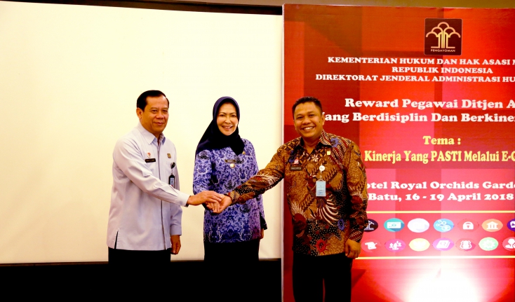 Batu - Direktorat Jenderal Administrasi Hukum Umum (Ditjen AHU) melalui Bagian Kepegawaian mengadakan kegiatan reward bagi Pegawai yang berdisplin dan berkinerja baik dengan tema "Penguatan Kinerja Pegawai Ditjen AHU Yang Pasti Melalui e-Goverment". Dalam Laporannya Kepala Bagian Kepegawaian Ditjen AHU Bapak Sucipto menyampaikan bahwa kegiatan ini dilaksanakan berdasarkan Undang-Undang Nomor 5 Tahun 2014 Tentang Aparatur Sipil Negara dan Peraturan Menteri Pendayagunaan Aparatur Negara, selain itu Sucipto menjelaskan penghargaan yang diberikan kepada pegawai yang berdisiplin dan berkinerja baik berdasarkan penilaian yang dilakukan oleh Unit eselon II dilingkungan Ditjen AHU. "penghargaan reward ini diberikan kepada pegawai yang berdisiplin dan berkinerja baik yang berdasarkan oleh Unit eselon II dilingkungan Ditjen AHU." Jelasnya. Kegiatan ini diikuti oleh 25 pegawai yang berdisiplin dan berkinerja baik yang dilaksanakan selama empat hari di Hotel Grand Royal Orchids di Kota Batu, Jawa Timur.(17/04)