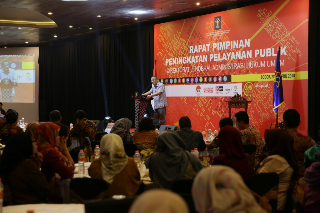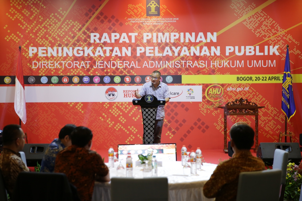 Bogor - Demi meningkatkan kualitas pelayanan publik kepada masyarakat, Direktorat Jenderal (Ditjen) Administrasi Hukum Umum (AHU) sebagai bagian Unit eselon satu Kementerian Hukum dan Hak Asasi Manusia (Kemenkumham) mengadakan Rapat Pimpinan (Rapim) dalam rangka Peningkatan Pelayanaan Publik guna memberikan pelayanan Prima kepada masyarakat.