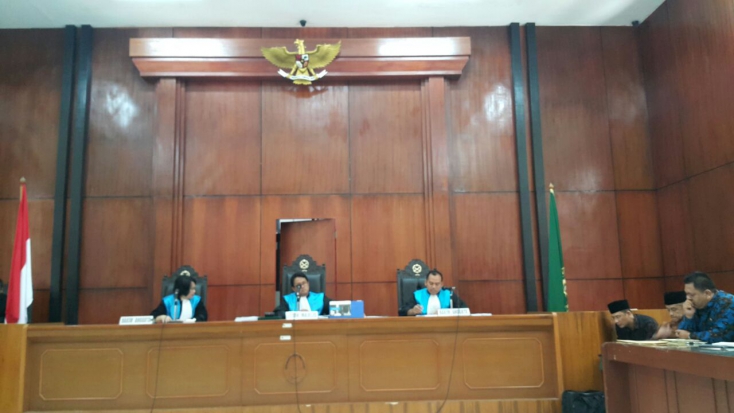 Sidang perkara gugatan bernomor 211/G/2017/PTUN.JKT ini dipimpin Tri Cahya Indra Permana dan dua hakim anggota, Nelvy Christin dan Rony Erry Saputro serta panitera pengganti Kiswono. DiJakarta, Jalan A Sentra Primer Baru Timur, Pulo Gebang, Cakung,Jakarta Timur, Kamis (07/18).