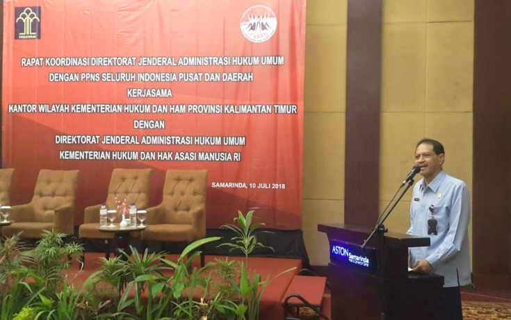SAMARINDA - Direktorat Jenderal Administrasi Hukum Umum (Ditjen AHU) terus berupaya menjaga kridibilitas Penyidik Pegawai Negeri Sipil (PPNS) Dengan menggandeng Kantor Wilayah Kementerian Hukum dan HAM (Kanwil kemenkumham ) Kalimantan Timur, Ditjen AHU melaksanakan kegiatan penguatan terhadap fungsi PPNS di Kalimantan Timur.