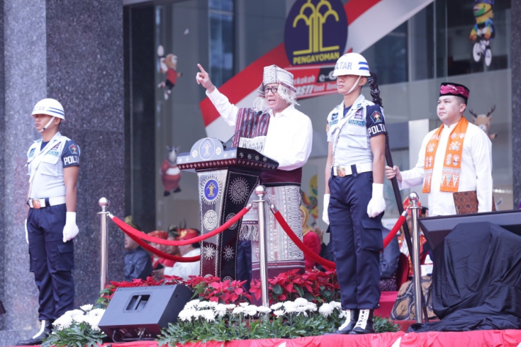 Jakarta – Berbagai macam pakaian adat Nusantara menghiasi lapangan Kementerian Hukum HAM dalam memperingati (HUT) RI ke-73, Menteri Hukum dan HAM RI, Yasonna H. Laoly dengan mengenakan pakaian adat khas Batak memimpin langsung Upacara Hari Ulang Tahun kemerdekaan (HUT) RI ke-73 yang bertema "Kerja Kita, Prestasi Bangsa", sejalan dengan motto Asian Games XVIII yaitu "The Energy of Asia". di lapangan Kemenkumham, Jum’at 17/8/2018. Upacara diikuti oleh seluruh pegawai dan Pejabat Kemenkumham.