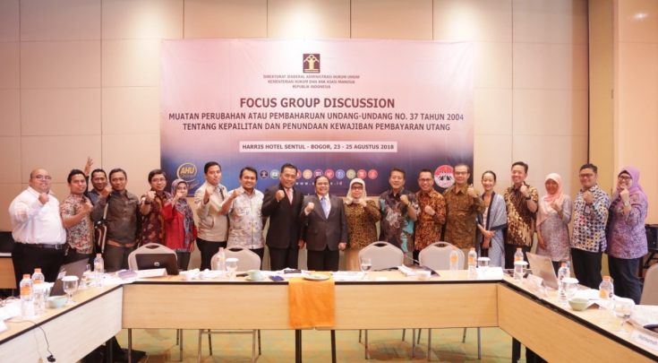 "Tingginya pendanaan dalam sektor usaha sering menimbulkan permasalahan khususnya mengenai kemampuan pembayaran utang dan penyelesaiannya, kita mendukung program pemerintah melakukan deregulasi peraturan perundang-undangan, salah satunya adalah Undang-Undang Kepailitan " kata Ses Ditjen AHU, Danan Purnomo saat membuka FGD di Hotel Harris Sentul, Bogor.(23/08)