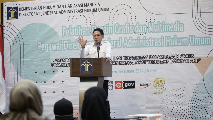 TANGERANG SELATAN - Sebanyak 25 Aparatur Sipil Negara (ASN) Direktorat Jenderal Administrasi Hukum Umum (Ditjen AHU) Kementerian Hukum dan Hak Asasi Manusia (Kemenkumham) mengikuti pelatihan desain grafis dan multimedia dalam rangka pengembangan dan peningkatan sumber daya manusia. Dengan mengandeng narasumber media swasta Jawa Pos dan Berita Satu, Ditjen AHU ingin sumber daya manusia di lingkungan Ditjen AHU menjadi lebih profesional dan berkualitas.