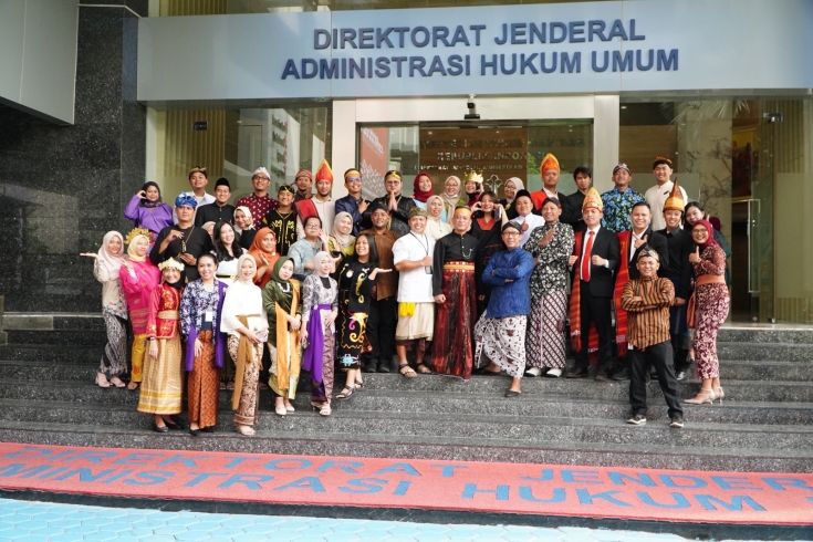 Selain itu, ASN Direktorat Jenderal Administrasi Hukum Umum ( Dijen AHU) terpantau kompak mengenakan pakaian adat dan hikmat mengikuti upacara hari lahir Pancasila tahun 2024.