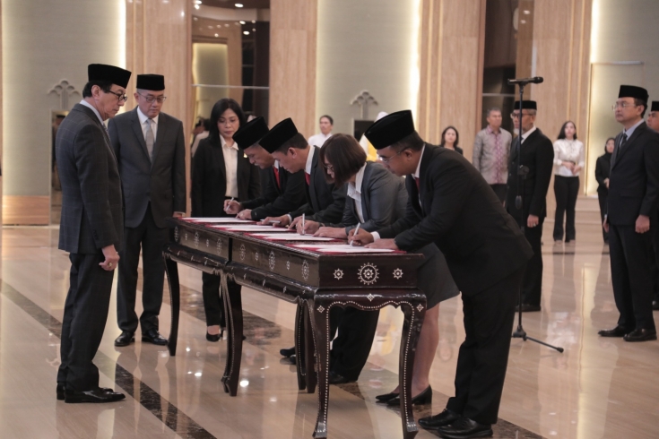 JAKARTA - Menteri Hukum dan Hak Asasi Manusia (Menkumham), Yasonna H. Laoly, menegaskan pentingnya pengawasan profesional terhadap notaris untuk mendukung iklim ekonomi kondusif. Hal ini disampaikan dalam Pelantikan dan Sumpah Jabatan Pengganti Antar Waktu Majelis Pengawas Pusat Notaris, Pengganti Antar Waktu Majelis Kehormatan Notaris Pusat Periode 2022-2025, Pengganti Antar Waktu Majelis Kehormatan Notaris Wilayah Periode 2022-2025 dan Pelantikan dan Sumpah Jabatan Majelis Pengawas Konsultan Kekayaan Intelektual 2024-2027.