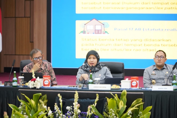 BANDUNG - Direktur Otoritas Pusat Hukum Internasional (OPHI) Direktorat Jenderal Administrasi Hukum Umum (Ditjen AHU) Kementerian Hukum (Kemenkum) Agvirta Armilia Sativa mengatakan jika mobilitas lintas negara yang tinggi saat ini memicu kompleksitas hubungan hukum, terutama dalam kontrak bisnis internasional, warisan, hingga perkawinan antarnegara. Menurutnya, kehadiran regulasi yang komprehensif dan adaptif diharapkan mampu menjadi jawaban atas kebutuhan kepastian hukum bagi pelaku usaha maupun masyarakat dalam hubungan perdata lintas negara.