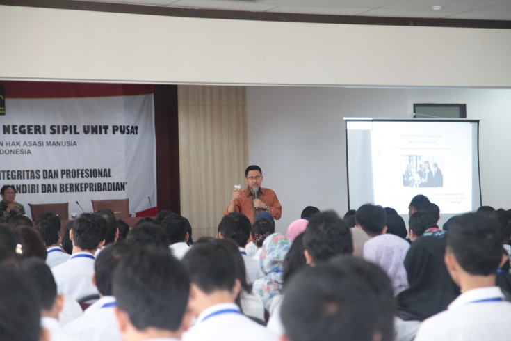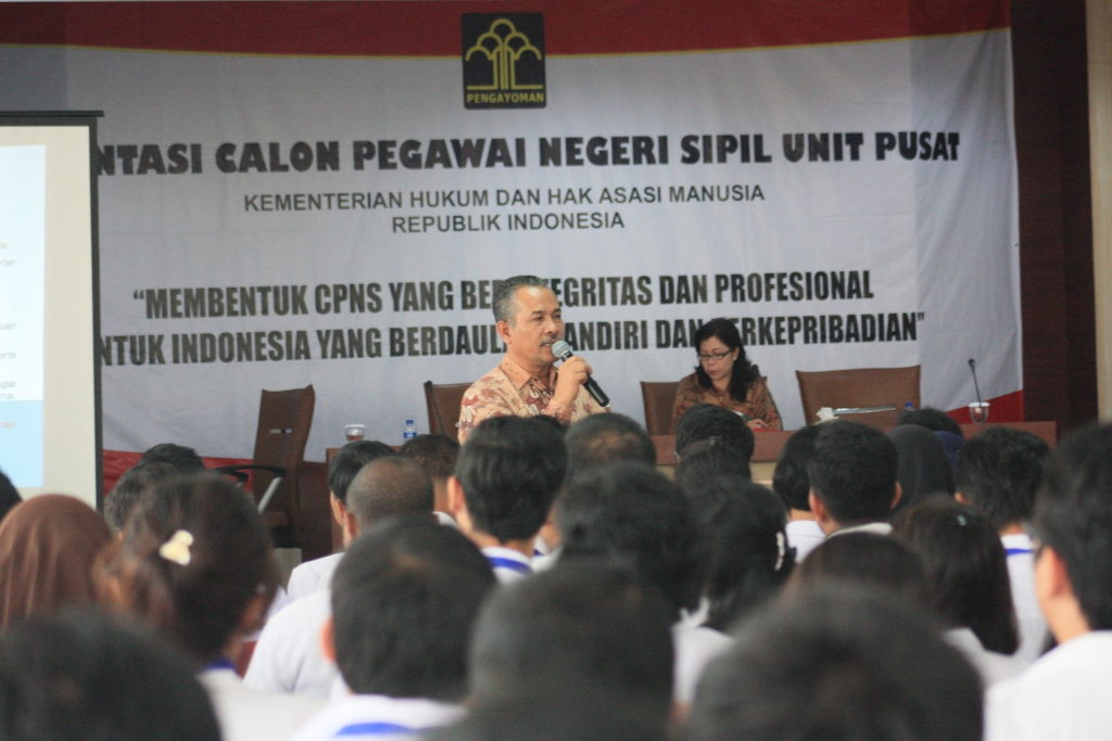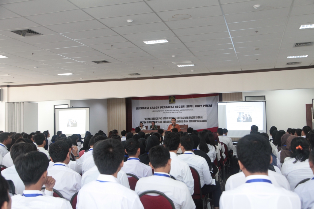 Jakarta, 07 Mei 2015 – Penyelenggaraan kegiatan orientasi CPNS adalah untuk memberikan pembekalan terkait tugas dan fungsi seluruh unit pusat Kementerian Hukum dan Hak Asasi Manusia dan untuk membentuk karakter CPNS yang disiplin dan berintegritas. Dengan tujuan agar terbentuk aparatur sipil negara yang profesional dalam pelaksanaan tugasnya.