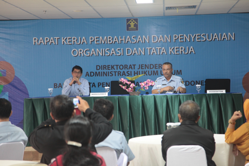 Bahwa Raker Pembahasan dan Penyesuaian Organisasi dan Tata Kerja Direktorat Jenderal Administrasi Hukum Umum dengan Balai Harta Peninggalan ini berlangsung di Jakarta pada tanggal 11 s/d 14 Mei 2015 bertempat di Ruang Rapat Oemar Seno Adji Lt. 18 Ditjen AHU Gd. Sentra Mulia.