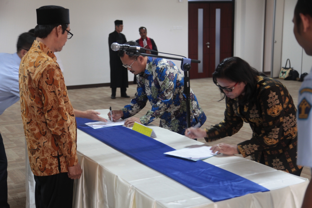 Jakarta, 26 Mei 2015 – Bertempat di Ruang Oemar Seno Adji Lt. 18 Ditjen AHU Kementerian Hukum dan HAM, Direktur Pidana Salahudin telah melantik dan mengambil sumpah Penyidik Pegawai Negeri Sipil di lingkungan Ditjen Sumber Daya Air Kementerian Pekerjaan Umum dan Perumahan Rakyat sebanyak 17 orang dan Badan Pengawas Obat dan Makanan sebanyak 4 orang.