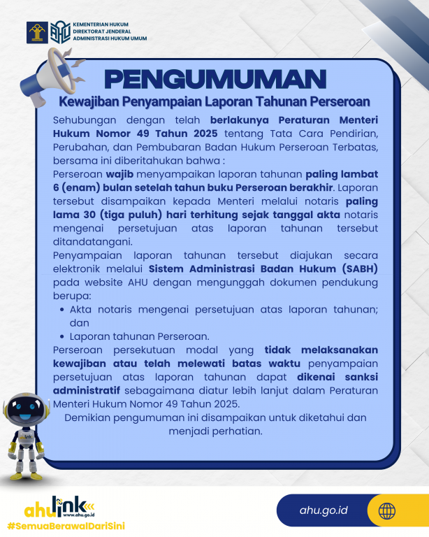 PENGUMUMAN KEWAJIBAN PENYAMPAIAN LAPORAN TAHUNAN PERSEROAN